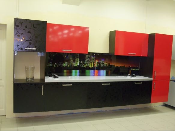фото с магазина фото после ремонта. мебель с фартуком из кал. стекла обошлась в 65тыр. длина 3,90м.