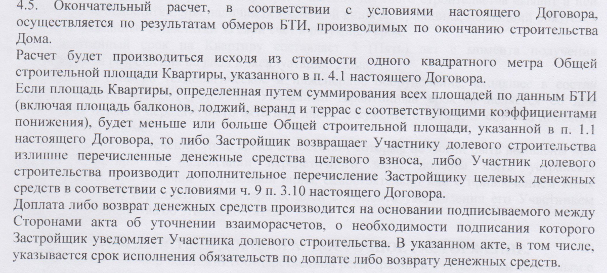 В договоре "черным по белому" написано про окончательный расчет, где указывается ....evgeniya.d писал(а):В ДДУ ясно и понятно написано в п. 1.1, что никакого перерасчета не будет. Может я читать разучилась)))...
