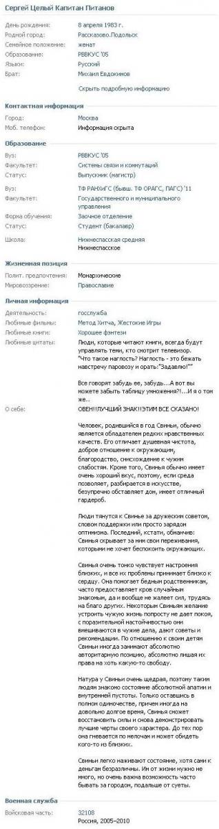 Ну нашелся он в контакте, и что дальше?) Прям компромат, ваще офигеть)Зёма писал(а):Конечно можетAviator писал(а):Может, один хороший человек пригласил на свадьбу другого хорошего человека. А факт родства доказать ещё надо. Ну, или услышать публичное признание.тогда сам Бог велел с ним познакомиться побли-и-иже