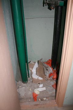P.S. у ЖЭУ видимо только первый подъезд 44А дома образцово-показательный, в который они водят комисиии, т.к. там и стекла разбитые меняют, и светильники восстанавливают, и подъезд там оштукатурен так как должен быть, а не так как получилось.