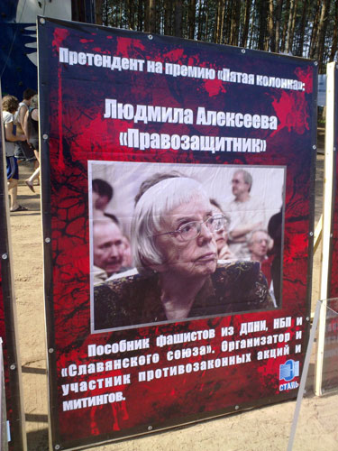 Поводом стала история с инсталляцией ?Им здесь не рады? на форуме ?Селигер?: активисты из движения ?Сталь? установили 13 палок с фотографиями известных деятелей, которые были одеты в шапки с нацистской символикой. В числе этих людей была и глава Московской Хельсинкской группы Людмила Алексеева, которая входит в совет при президенте по развитию гражданского общества, член Общественной палаты Николай Сванидзе и другие.