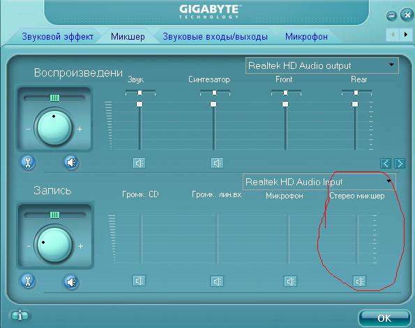 Звук встроенный Realtek, на Gigabyte маме под Core 2.