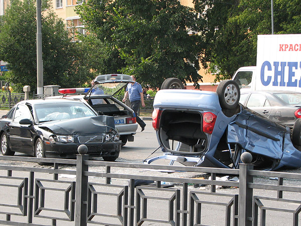 у роддома: перекресток, я стою поворачиваю налево, прямо едет девушка, пропускаю её.. справа на красный пролетает Вольва и не тормозя входит в синюю машину... все слава богу живы...