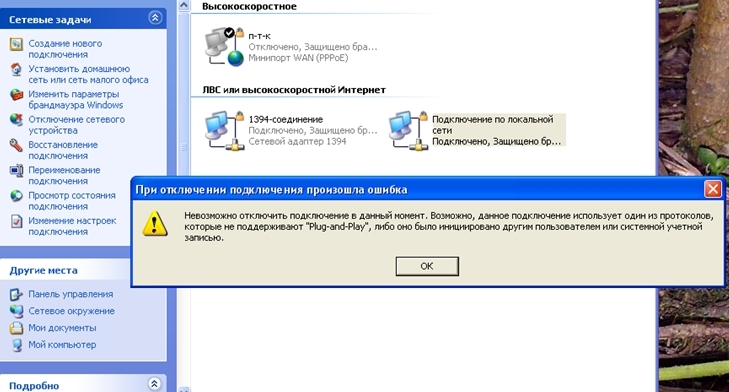 по вечерам невозможно отключить - Подключение по локальной сети... днём без проблем.