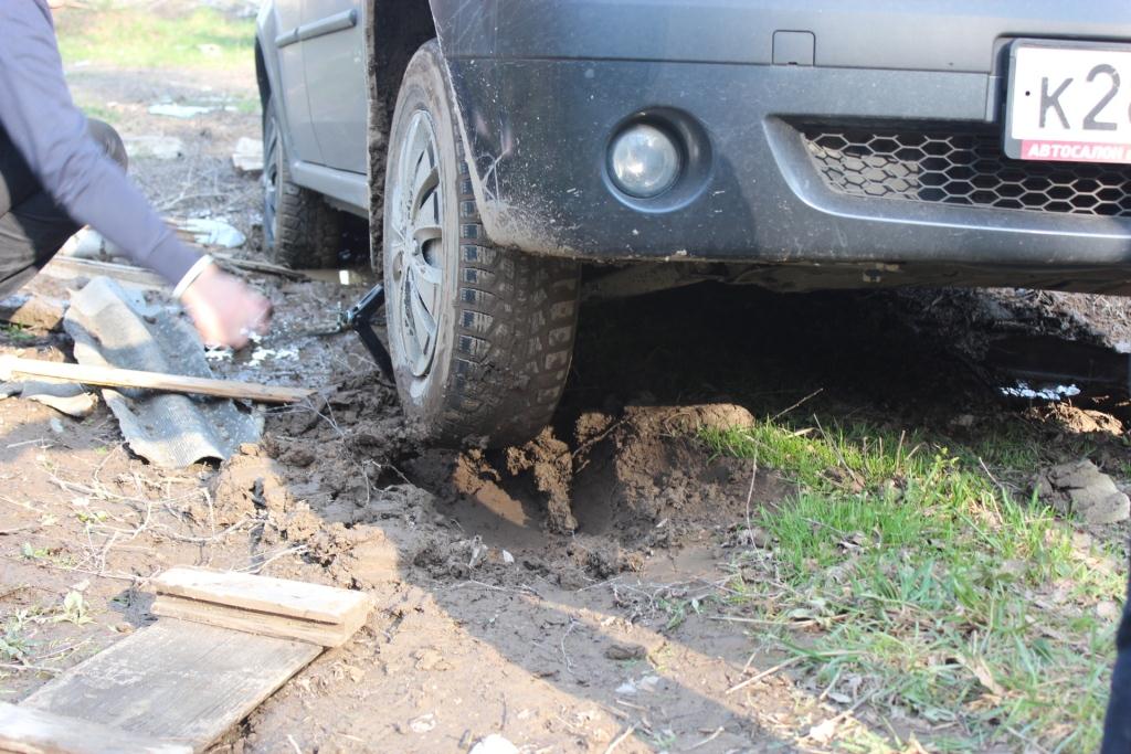 Вопщем пришлось применить домкрат, доски, жену и какую то мать............ после чего, по уши в гуано, отправитсо домой все же на своем авто! :)