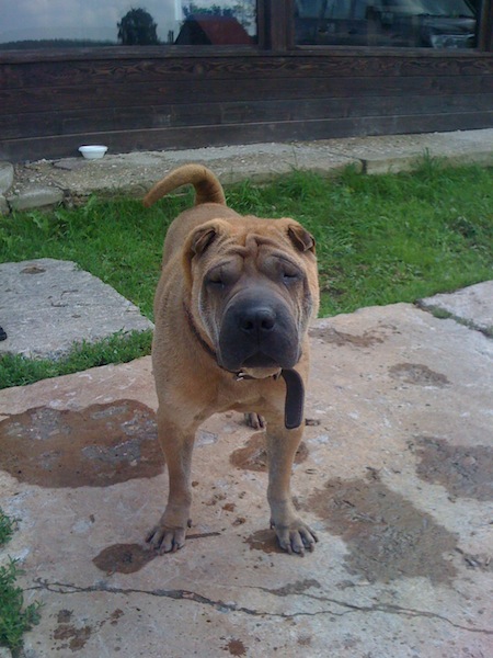 Найден шарпей, кобель, видимо немолодой. Цвет - рыжий.
