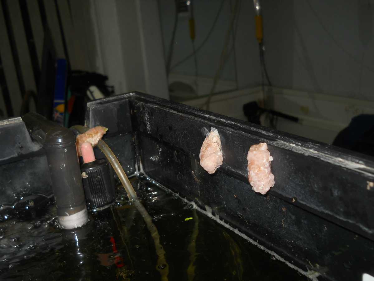 По началу лутше держать в отдельном аквариуме с хорошей фильтрацией и аэрацией. Полученную икру выложить в отдельный аквариум и инкубировать там. Выросших улиток можно сажать в общий аквас.