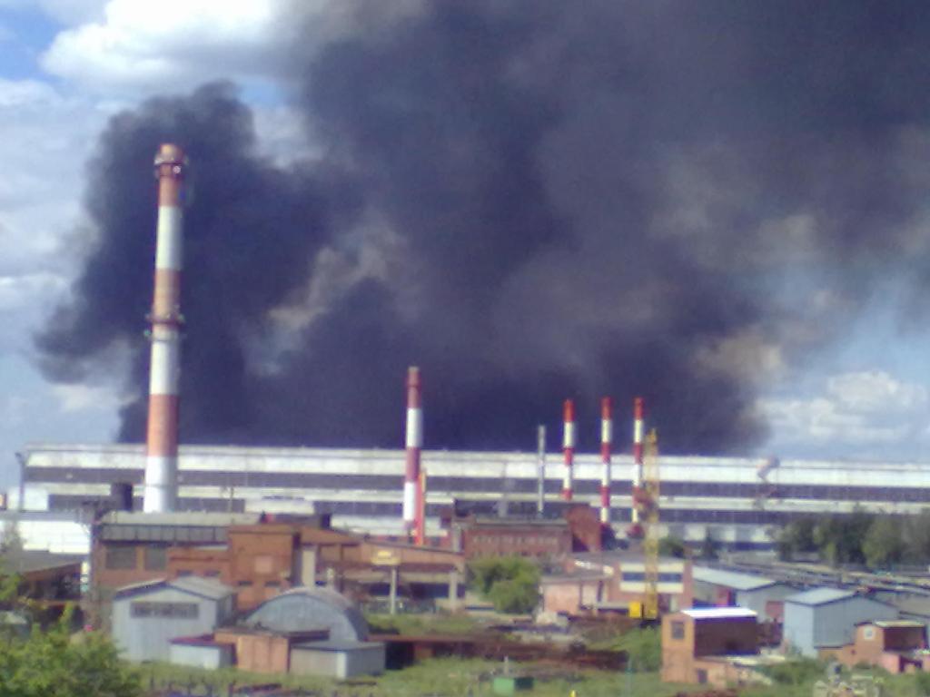 Скорее всего на аккумуляторном заводе что-то горит. По крайней мере огонь и дым исходят из той области. До сих пор периодически случаются хлопки.