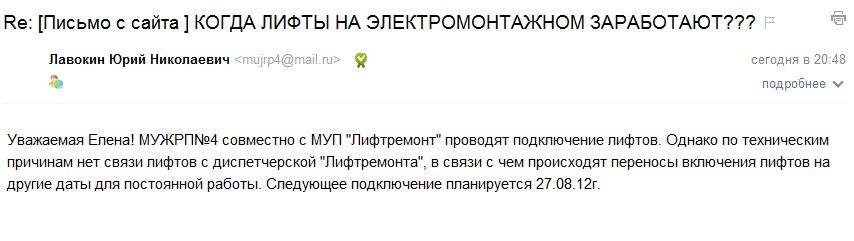 Persona Rica писал(а):Информация из МУЖРП и Лифтремонта (вроде так они называются):