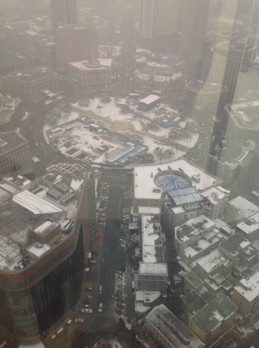 Вид на площадь с 52 этажа (скоростной лифт, этаж за 1 сек проходит, подняться на 52 жтаж - 52 секунды)