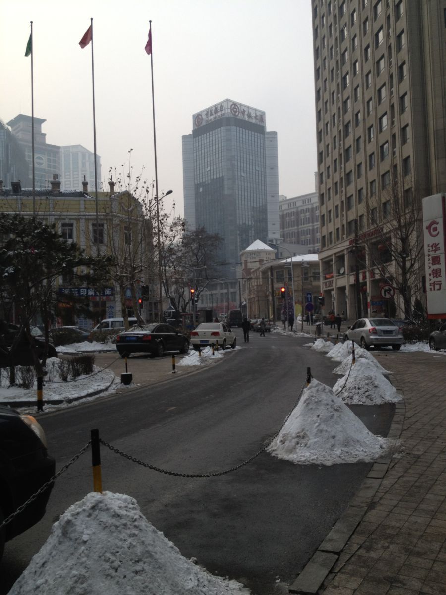 Была в Даляне в командировке. В день прилета прошел снег, местные сказали, первый за зиму. Первое впечатление – город кажется кажется мрачноватым, серые, коричневые , преимущественно бетонные небоскребы, перемежающиеся «малоэтажными» 9-этажными квартальчиками и 5-этажными таунхаусами, местами идет строительство, сносят и застраивают целыми кварталами, никаких точечных застроек. Привезли в центр-банковский. Круглая площадь, вокруг которой одни банки, потом отели, можно сказать, друг на друге, рядами, выбирай любой, вид с 22 этажа отеля – отели-небоскребы, каменные джунгли… Когда едешь по городу, создается впечатление, что правил дорожного движения не существует, маневры на дороге озбозначенные световыми сигналами, активно подтверждаются и предупреждаются звуковыми. Тротуары широкие – 2-3 машины в ширину тротуара припарковываются легко, соответственно, пешеходы активно перемещаются по проезжей части, на которой тоже запаркованы авто, по оставшимся 2 полосам активно двигаются авто. На вскидку, самое распространенное авто – ауди А8, много W, такси вообще сплошь W типа старенькая джетта, все голубого цвета. Подозреваю, обилие W из-за завода, который там находится. Много хонд и тойот.