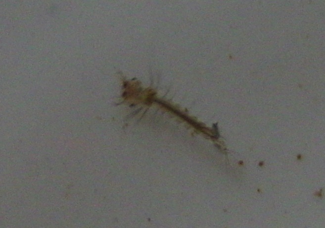 Скорее всеко личинка комара кулекс. Прекрасный корм рыбе. А плавают сгибаясь пополам и распрямляясь..В народе - чёртики.