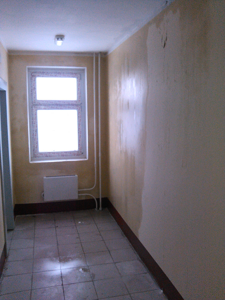 Лифты не работают. Краска в подъезде, там где текла вода уже пошла пластами.