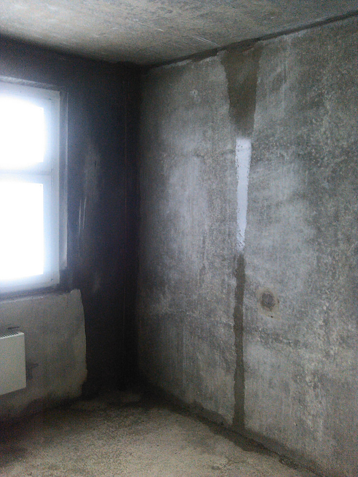В санузлах воды по щиклотку, стены в квартире все в воде, уже не водопад, но течь еще не перестало, особенно в большой комнате.