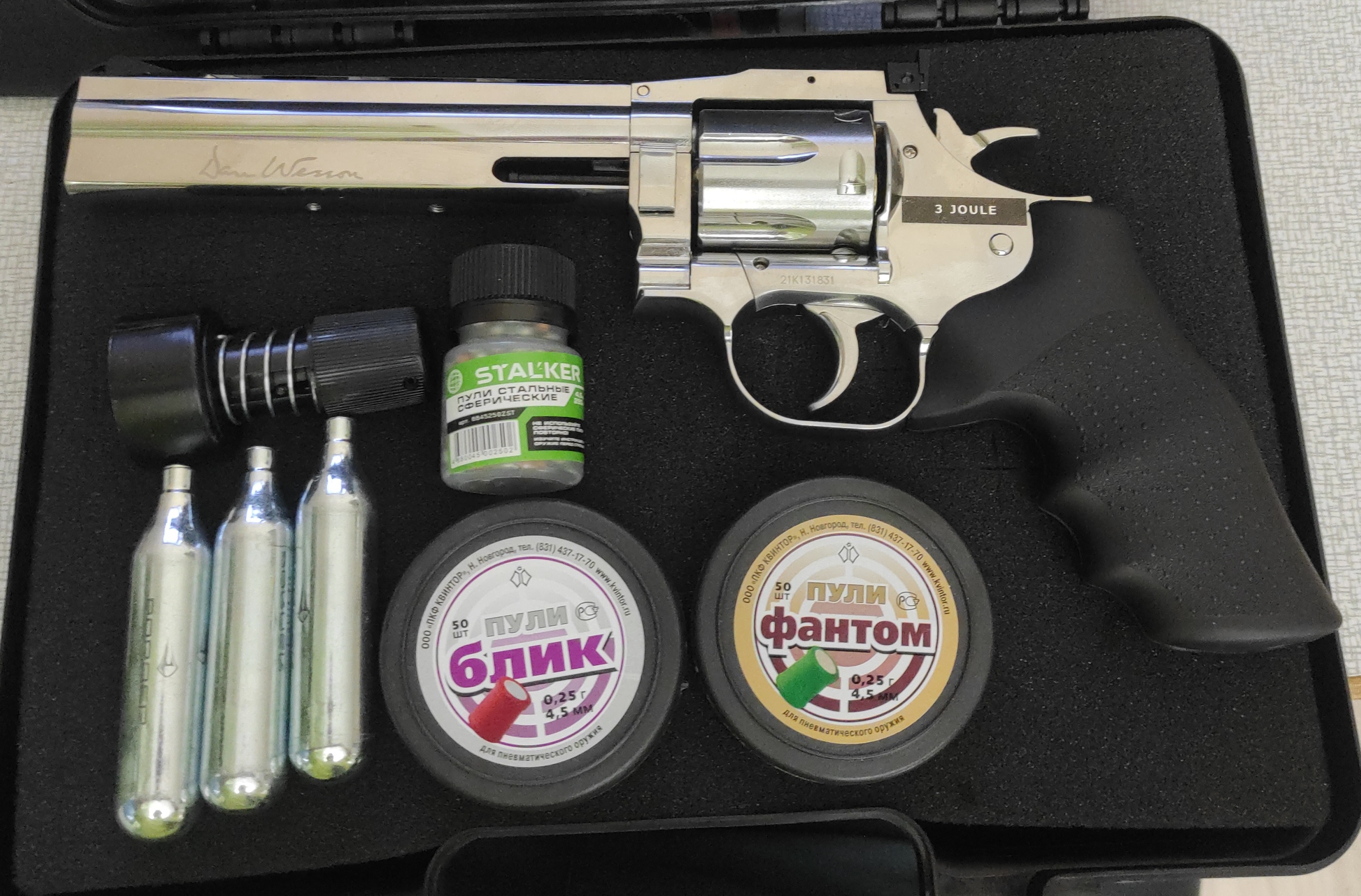 Калибр стандартный 4,5 мм омедненный шарик, пистолет не настроен в этом соглашусь, но на неделе должен приехать хронограф, хочу настроить на д30 мысов.