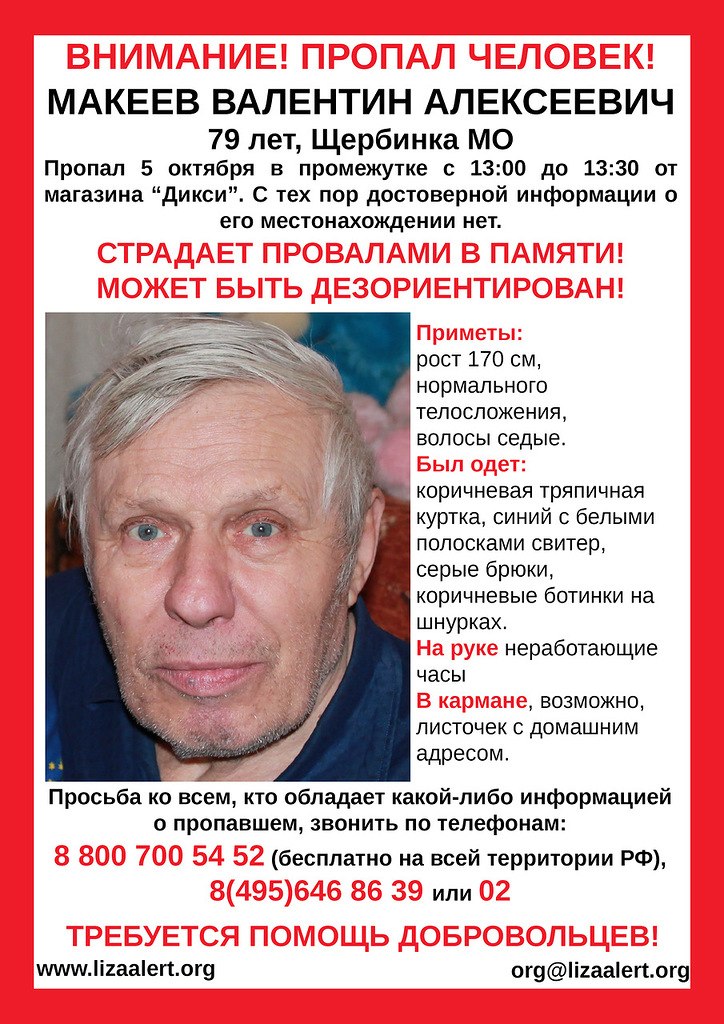 Если кому-то известно его местонахождение или любая информация просьба сообщить по телефону "горячей линии" ПСО "Лиза Алерт" 88007005452 ( бесплатно с любого телефона РФ) или по номерам указанным в теме на форуме.