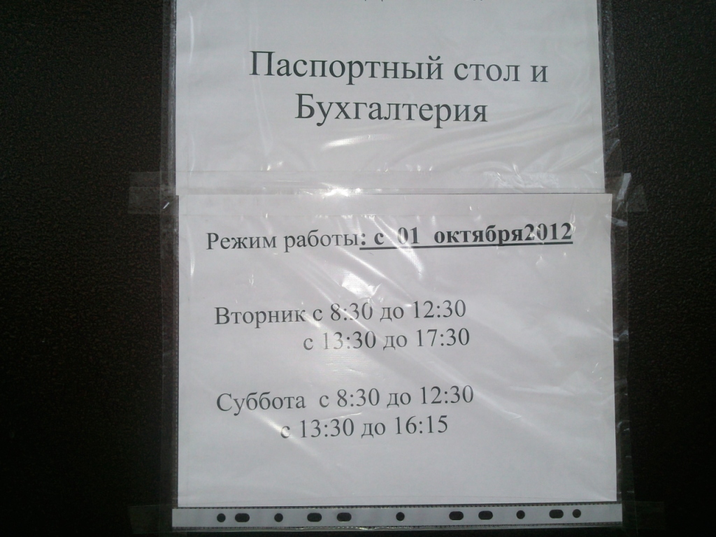 С 1 октября меняется расписание паспортного стола и бухгалтерии на Комсомольской 46, теперь это будет: