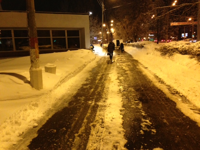 Я до помойки дойти не могу. Снега сантиметров 25-30 на дороге. Сплошной кашей.