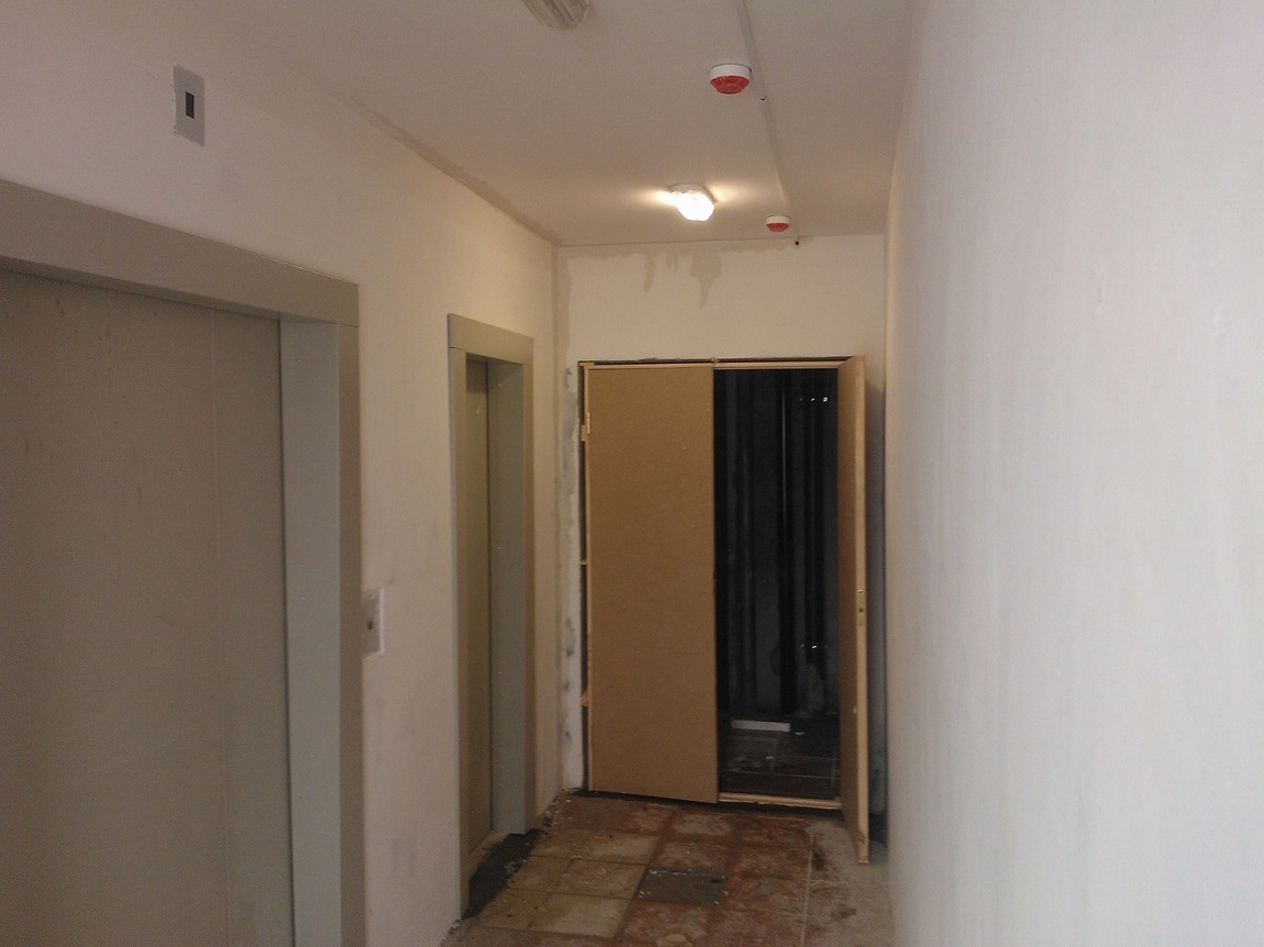 Между 3 и 4 этажом стоит дверь(чтобы тепло наверное не уходило), До двери все более менее нормально, талибы штукатурят, все чистенько, сушат стены, скорее всего для членов ГК. выше ППЦ полный для стадии сдачи дома.