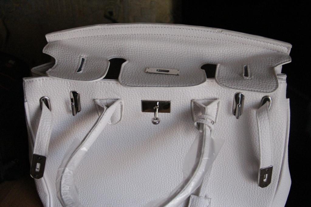 1)сумка белая, качество очень хорошее, но открывать ее совсем не удобно.