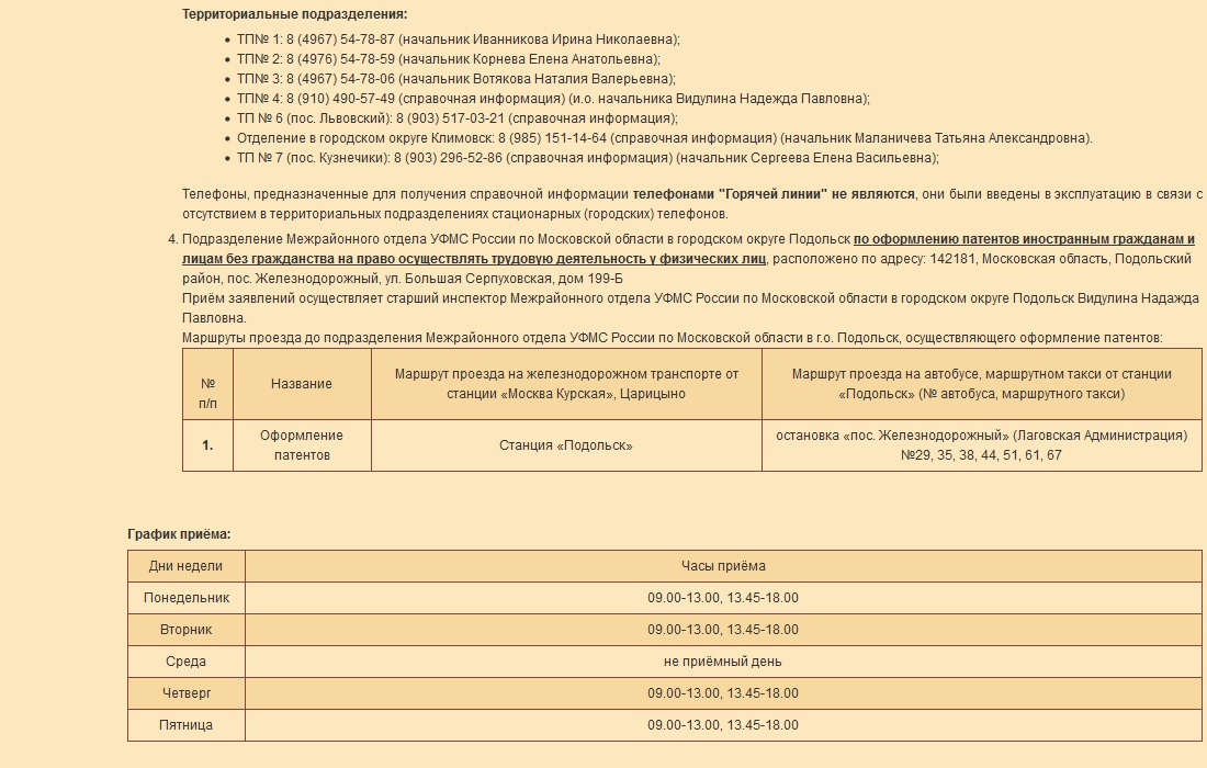 Вопреки информации на сайте УФМС, в четверг пункт работает с 15 ч., а не с 9.00. Телефон, указанный на сайте, вне зоны действия сети.