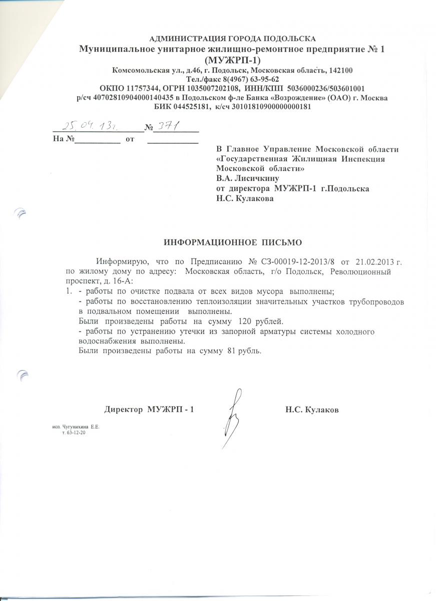 Госжилинспекция оштрафовала их на 40.000, в ответном письме - отчет о вывозе мусора, восстановлении изоляции и потраченных 120 р и 81 р.