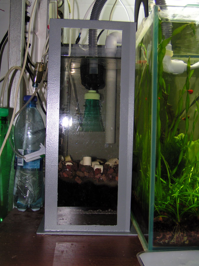 При моей компоновке можно убрать помпу из аквариума. Кстати, щас делаю домой по той же технологии.Не могу приспособить миникани - ну ни как не выходит без системы водопровода.
