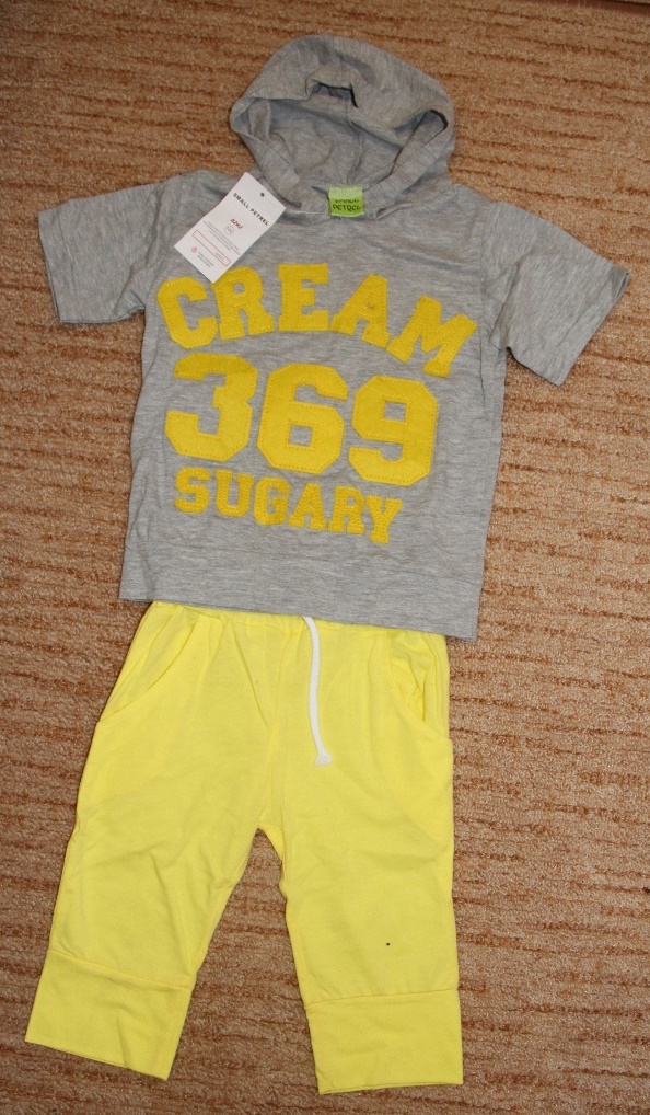 костюмчик желто-серый понравился, без запаха, не маломерит, 90 размер на 86см хорошо сел, с запасиком. http://www.aliexpress.com/snapshot/224616885.html цвет бледнее чем на фото.