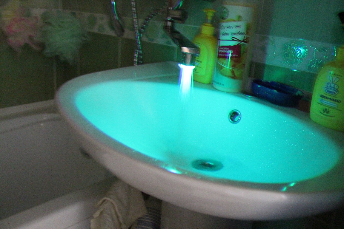 2.датчик воды, подходит не на все смесители, (на широкий "носик") очень красиво светится, особенно в темноте, свет в ванной можно и не включать. По цвету воды можно узнать горячая или холодная вода. Очень довольна, отличная вещь, и помощь мамочкам , у которых в квартире газовая колонка, не надо щупать рукой нагрелась вода или нет. Синий цвет холодная , зеленый -теплая, красный-горячая.