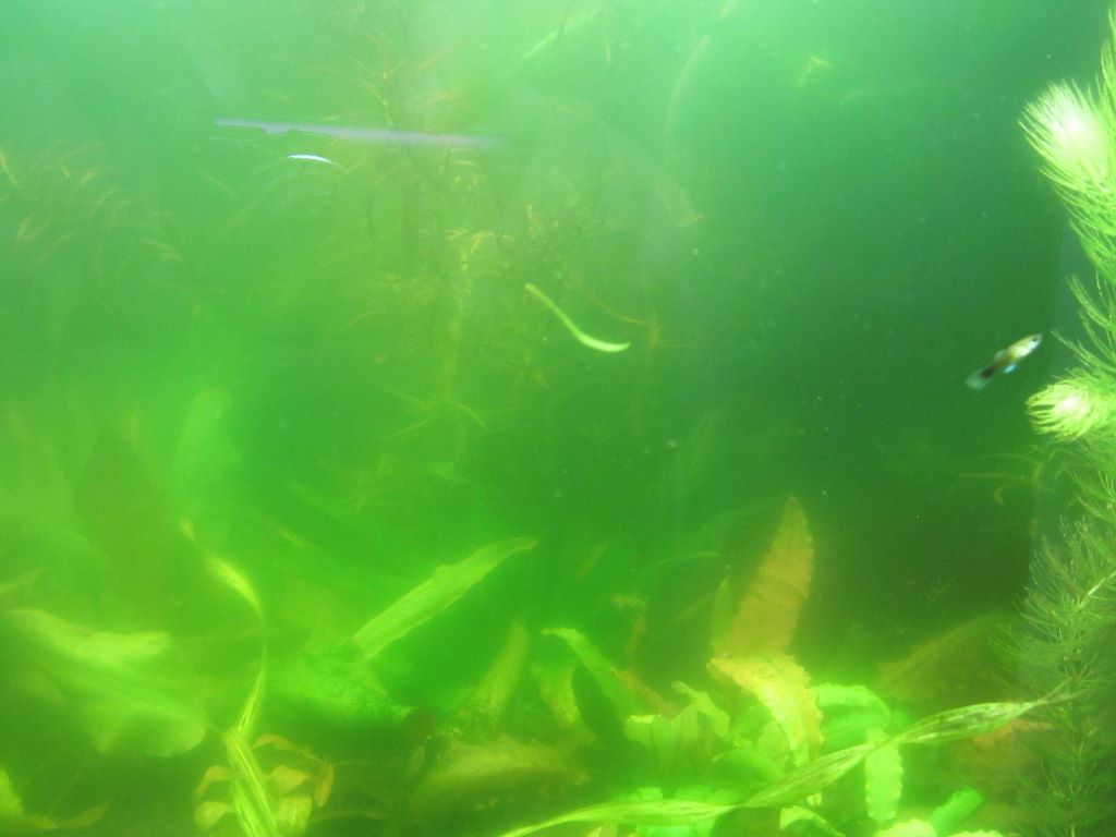 Лёш,одноклеточные водоросли. Дима их убивает ультрафиолетом. А так попробуй сократить свет до 4х часов,или не светить дня три. Вообще светить надо не более 8-9 часов.