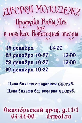 Новогодние ёлки во Дворце молодежи СПЕШИТЕ количество билетов ограничено