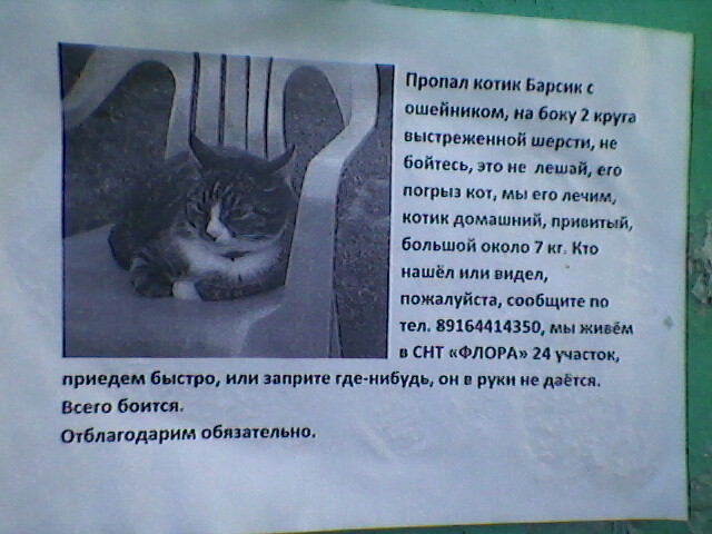 Пропала (найдена) кошка (объявления)