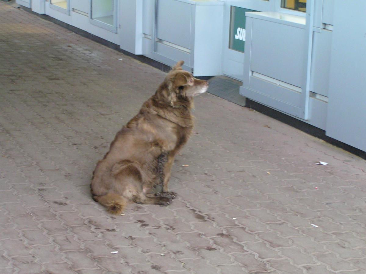 Эта собака, видимо, поселилась на автобусной остановке "Площадь Ленина", т.к. несколько раз ее там видела лежащей. Перебита или травмирована передняя лапа, поводка нет, только ошейникИванна писал(а):Потеряшка в Подольске - центр города