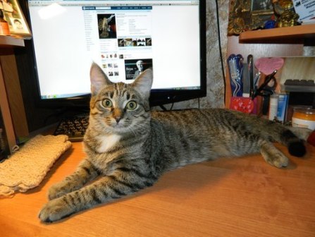 Единственное, хочу уточнить, что хвостик длинный, кошка не такая пушистая, как на Вашей фотографии (не облезлая, просто короткошерстная) и глаза, по-моему, расположены по-другому - правый голубой, левый желтый.