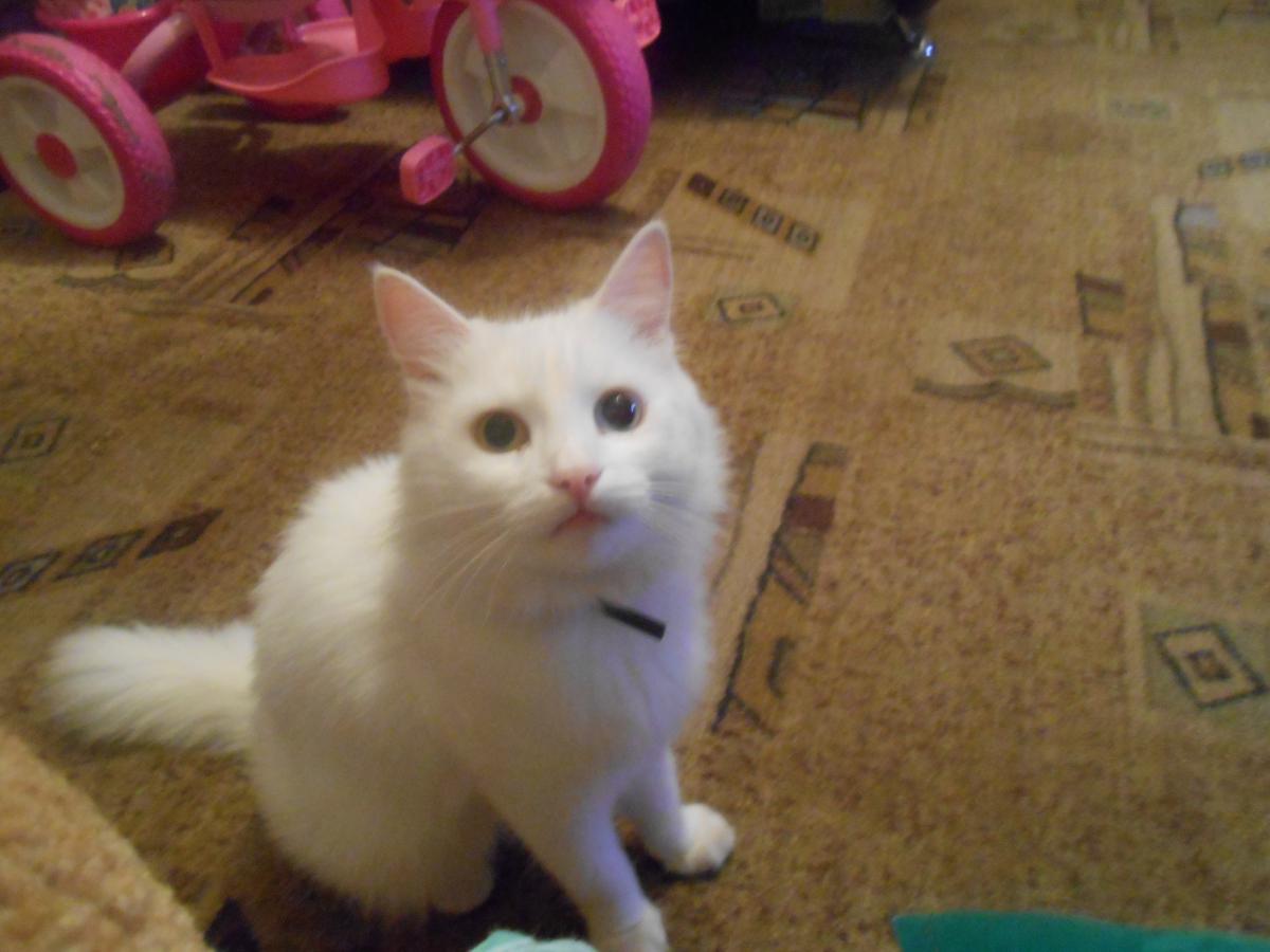 Пропала кошка в мик-не Кутузово, ул. Курчатова. Вышла гулять и домой не вернулась. Кошка смесь с ангоркой, пушистая ,чисто белая, с разными глазами (один зеленый, другой голубой), хвост укороченный после травмы. Если кто нибудь видел, пожалуйста сообщите. Если кто то подобрал, верните! страдает ребенок :( 89295749997