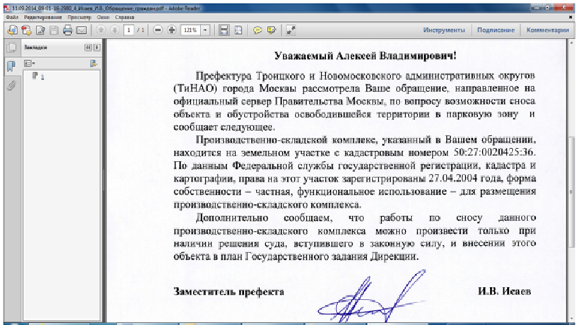 Ответ префектуры г.Москвы (троицка и номосквы)