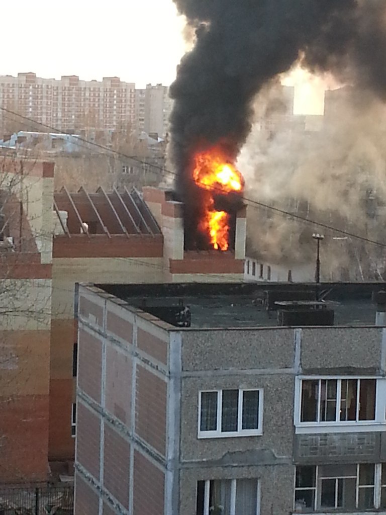 Крышу не успели доделать, а она уже полыхнула. Горел один угол наверху, мне с 11 этажа хорошо видно было.