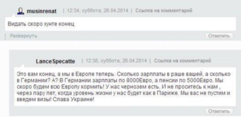Это хорошо,появилась "живая мысль",но конкретных вопросов,так и не появилось.Только общая болтовня,типа"у нас есть родственники в Украине и мы всё знаем".Ну и что же вы знаете другое,что вам не говорит штатный сотрудник ФСБ,модератор этого форума,под погоняйлом "mikke "?!Tarsius писал(а):Чудо недоразвитое, у нас такой регион, что кого не спроси, у всех родственники или знакомые есть в Украине, а у кого-то даже паспорт синенький есть. Потому мнение сформировано на основе личного анализа событий через знакомых. Методичку другую возьми - для ЦФО, а не ДВФОmuflon писал(а):Предложил задать вопросы свидетелю событий в Украине