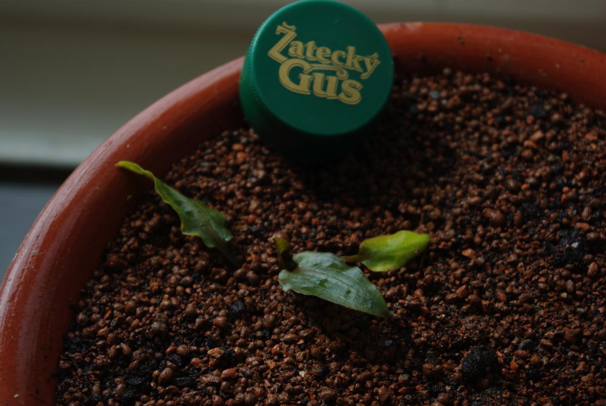 Крипта вендта была, но на 100% не уверен, так как их сейчас много разновидностей и я мог ошибиться. История такова, посадил ее в горшок и через 3-4 дня все листья засохли, думал плохая идея была (д.Жени) и плюнул на это дело, уборку горшка все откладывал, через 2-3 недели, когда решил убрать горшок, обнаружил что появился отросток из двух листьев, который я поливал, до того момента как кот вытащил его из земли и положил рядом с горшком, на тот момент он был около 3-4см высоту и около 5ти листьев. После чего я опять решил демонтировать горшок но опять руки не доходили, когда дошли появился еще один отросток, который на фото: