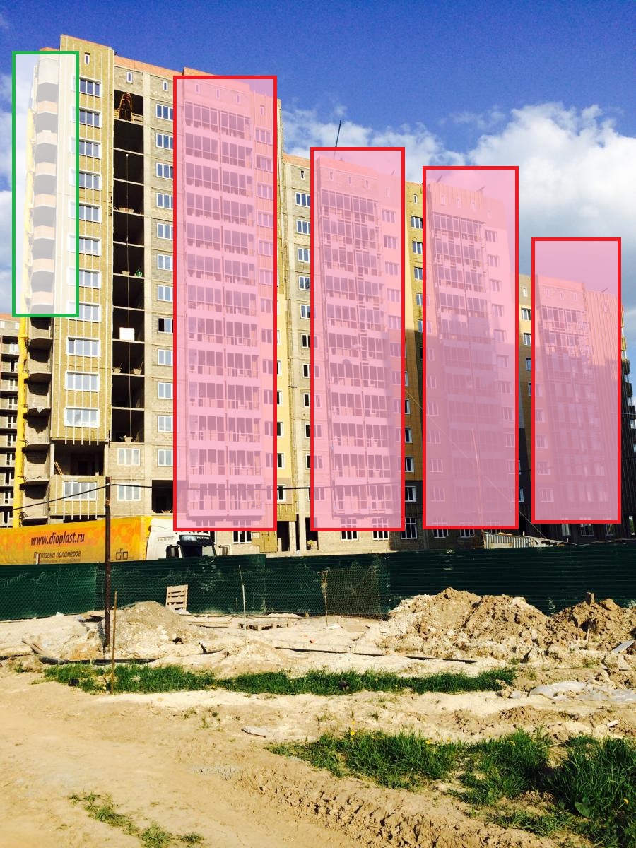 Красным выделено там где ничего не прикрепить на лоджию/балкон, зеленым там где это возможно.