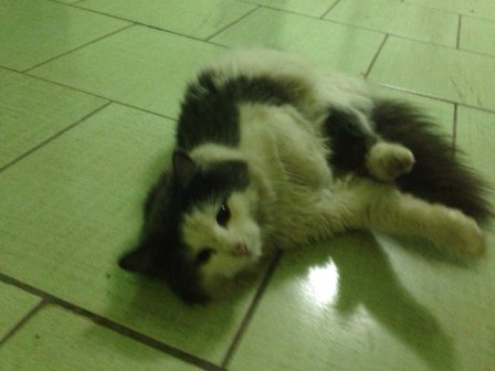 Найдена кошка (в момент обнаружения была грязно-серая). После помывки - белоснежное "облачко..