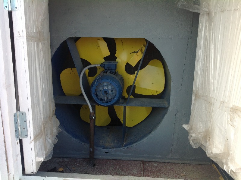 На фото противопожарный вентилятор. Их может быть несколько. Они должны включаться автоматически при срабатывании противопожарной сигнализации и предотвращать распространение пожара по лифтовой шахте и задымления эвакуационной лестницы. Работает ли сигнализация и включатся ли вентиляторы должна следить УК, либо нанятая ею организация. От этого зависит жизнь и здоровье жильцов в случае пожара, особенно верхних этажей, Совет с опусканием гвоздя с кровли по вентшахте в принципе правильный, но мало эффективный. Более действенным будет опускание на тросе лома или двухпудовой гирьки, таким образом можно не только обнаружить засор в вентканале, но и при необходимости разрушить его.