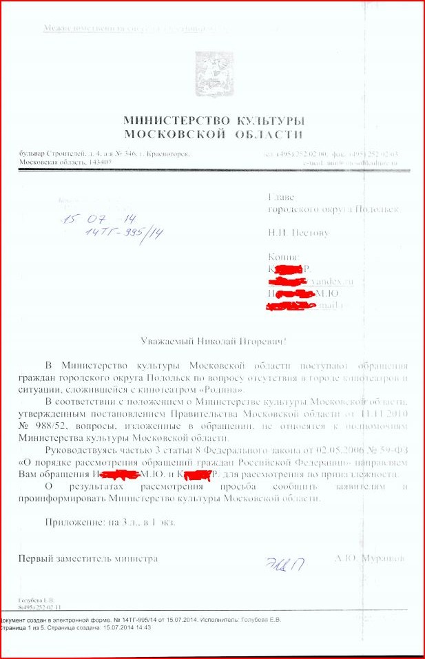 Хоть этот упрек и не мне был адресован, но все-таки черканул пару строк в МинКульт МО (и как оказалось не я один).konsulaki писал(а):ну Ваше не все равно ограничивается только стенаниями на форуме, так что на мой взгляд Вам тоже не особо это важно. Иначе давно уже бумагу с подписями какую-нибудь организовали и в разные инстанции обратились. И не надо говорить, что это все равно не поможет, Вы даже не пробовали.