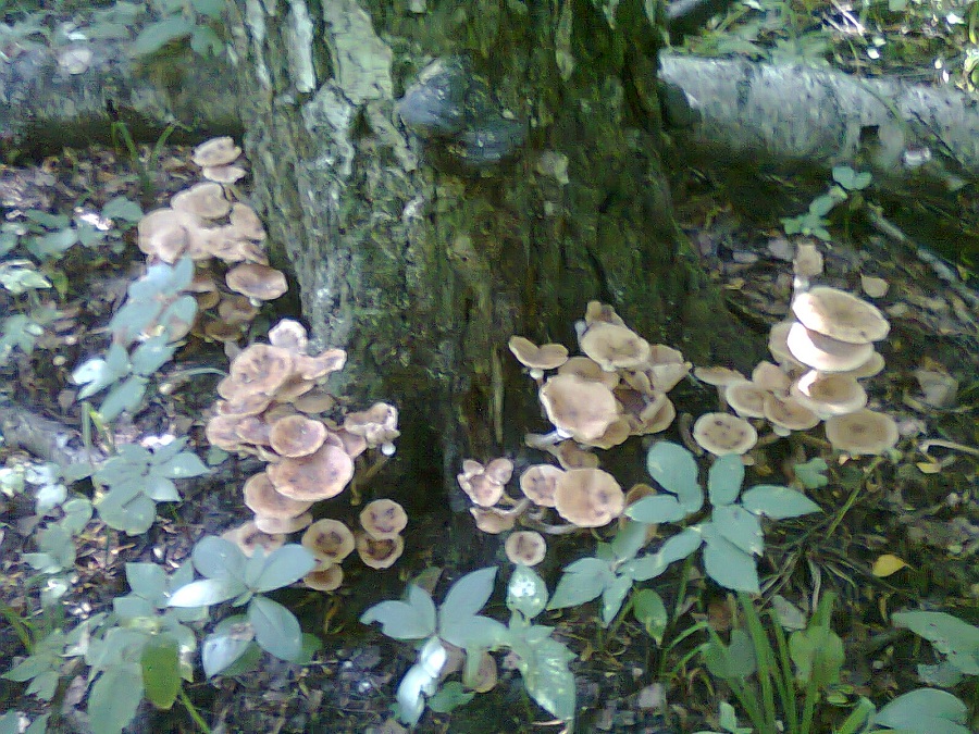 Опята хороши тем что всегда много, а когда очень много начинается как на фото, начинается резня с пеной у рта бензо... тьфу перочинным ножичком. Хотя думаю серпом будет сподручнее, ежели на газеле приехать :lol: