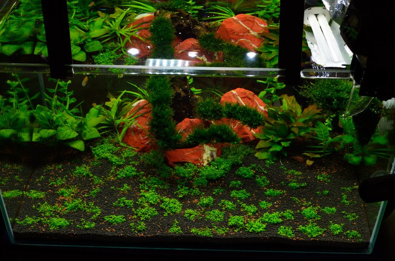 В углу розоватая это отросток крипты(которая на фото большая),а кормежка имелась ввиду УДО для растений.Высчитывается на калькуляторе,на который ссылка есть в теме про удобрения...