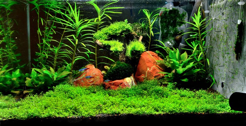 Это мы после пострижки и прополки такие. Нимфейку очень сильно обрезала, а то она больше половины аквариума занимает у меня обычно
