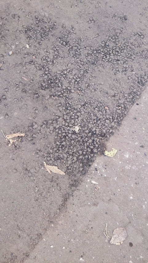 В начале этой страницы есть фото соседнего квадратика, где не скапливается вода, я опять-же не специалист, но мне кажется новый асфальт не должен быть вот таким (т.е. ломаться руками и рассыпаться под ногами),И это через 2дня после ремонта ям.