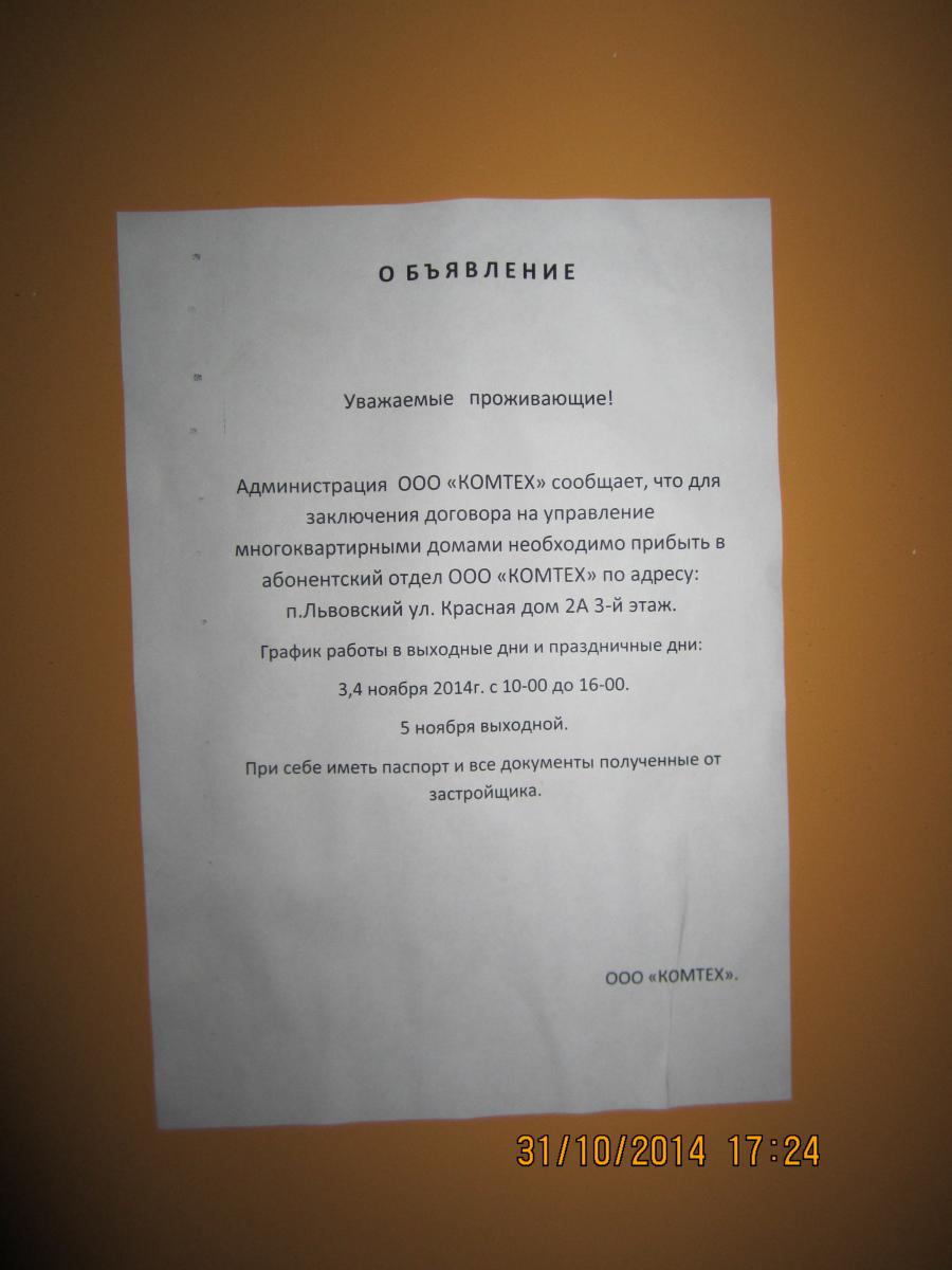 Сегодня вечером смотрел свою квартиру, на двери в подъезд было наклеено вот это объявление УК. (Горького/4 секция)[/quote]