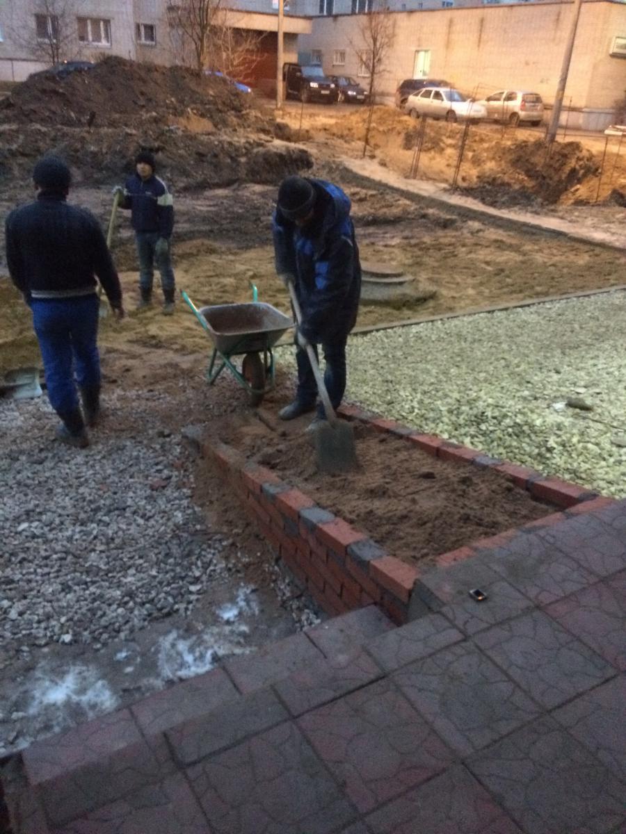 В данный момент делают спуск для колясок у подъездов (на фото подъезд второй секции)
