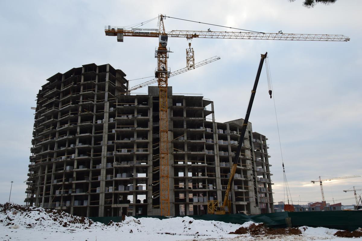 Вторая очередь,дом №2,закончили отливать секции 3(13 этажей),4(9 этажей),5(7 этажей).Разбирают монтажный кран.Раскидали по этажам газобетонные блоки для формирования наружних стен. На материалах не экономят.Блоки одни из лучших на рынке в России.